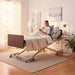 Heavy-duty hospital overbed table with steel frame supports 50 lbs without shaking or tipping. Perfect for hospitals, nursing homes, and long-term care facilities requiring reliable patient dining and activity surfaces. Premium laminate tabletop available in Mahogany, Cherry, Maple, Coastal Grey, and custom colors for seamless facility coordination.
